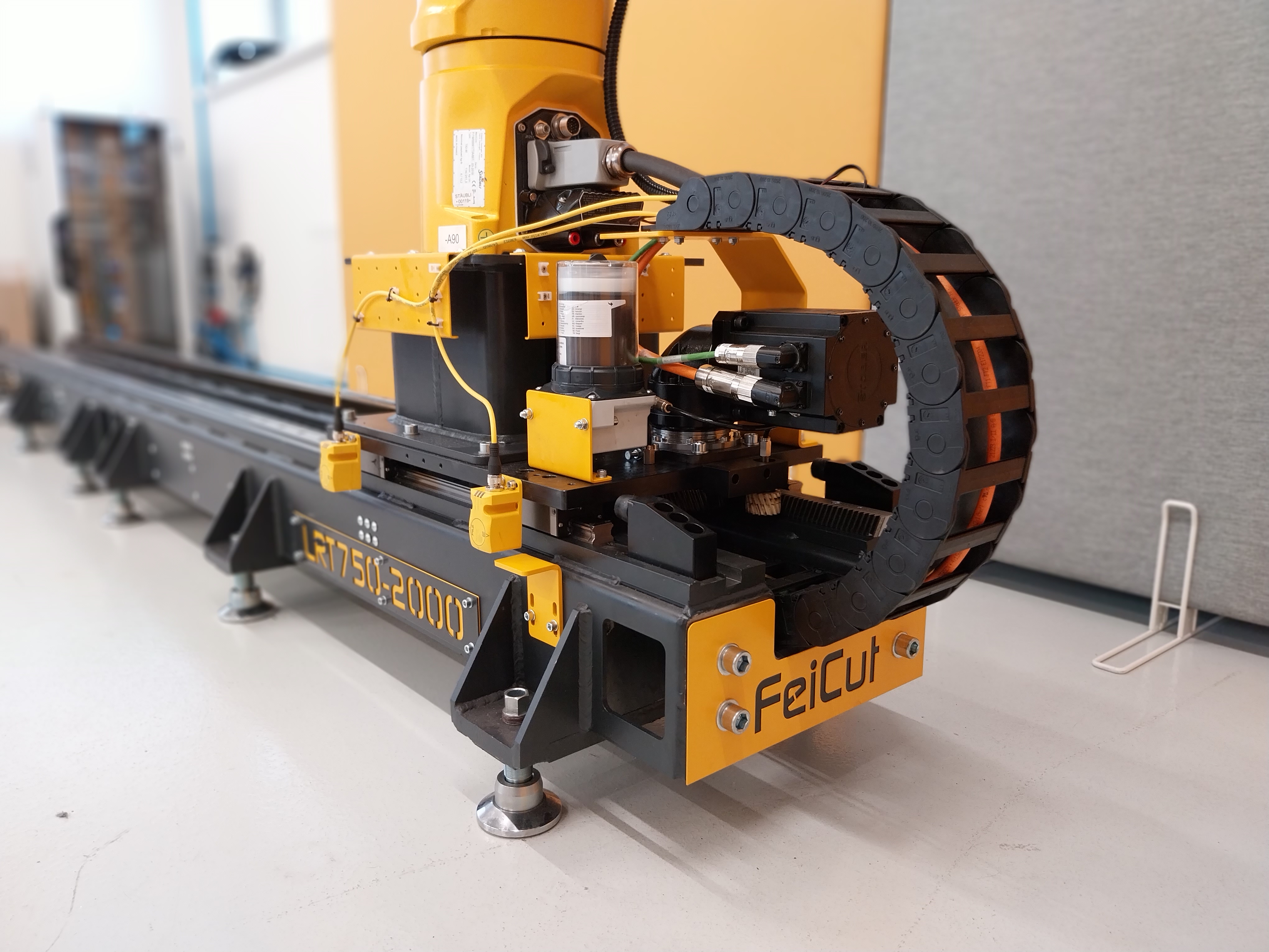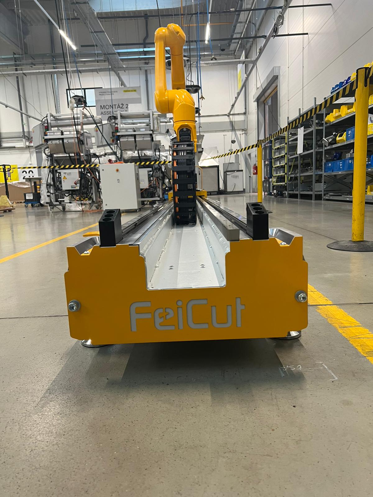 S prudkým rozvojem robotizace v rámci řešení automatizačních procesů přináší společnost FeiCut koncepční řešení rozšíření manipulačního prostoru průmyslových robotů. Robot využívající pojezdovou dráhu může obsluhovat více pracovišť, případně zvětšit technologický dosah v rámci operace. Zákaznická řešení pojezdových drah mohou být využívány i pro polohování měřících přípravků a zařízení, případně sloužit jako základové osy robustních víceosých manipulátorů. Hlavními přednostmi pojezdových drah FeiCut jsou modulární stavba, vysoká tuhost a zákaznická variabilita. V rámci konfigurace pojezdu je možné si vybrat z různých variant příslušenství vybavení dráhy, jako například centrální mazání pojezdových vozíků, přídavné lineární odměřování, fixační klidové brzdy pojezdu nebo podstavu pro konkrétního robota.